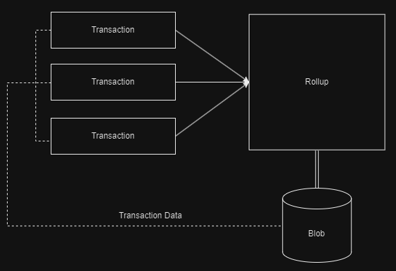 - Incoming transactions will be bundled into rollups, with each rollup storing all of the associated data from these transactions within blobs attached to the rollup.
