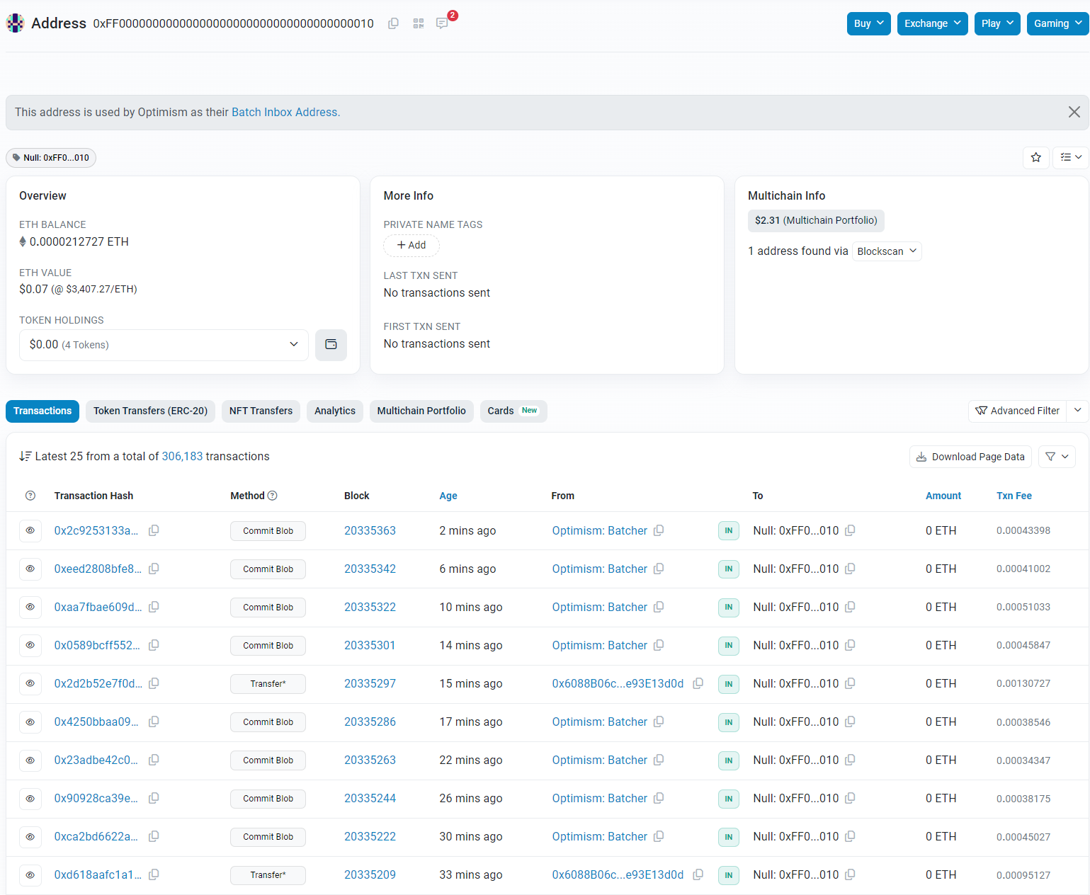 Check out the address of the Optimism batch inbox on Etherscan